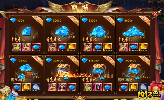 商城直购充值钻石时提供首充获得的稀有特殊时装和额外特权功能,吸引玩家进行钻石首充。