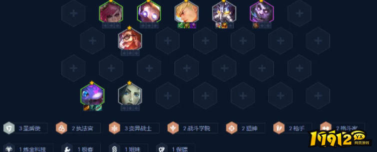 阵容羁绊:3圣盾使 2执法官 3变异战士 2学院 2狙神