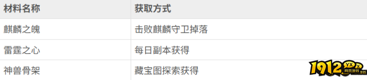 以下是获取麒麟所需的主要材料及其获取方式: