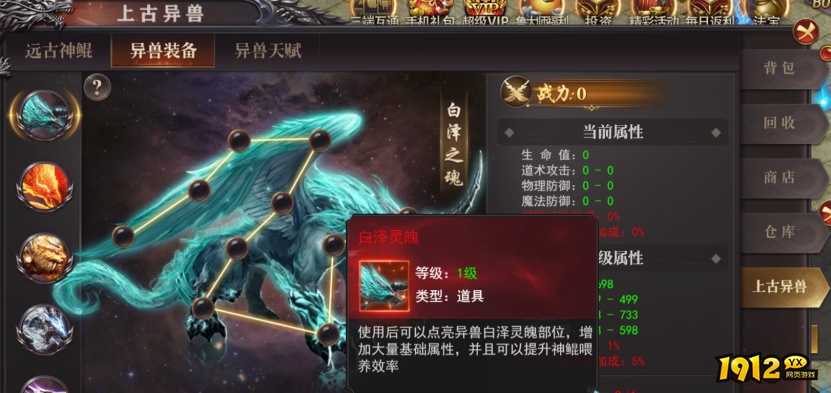 (1)升星道具:使用对应异兽灵魄可以进行升星
